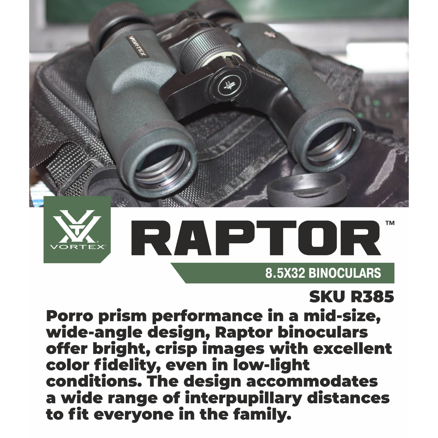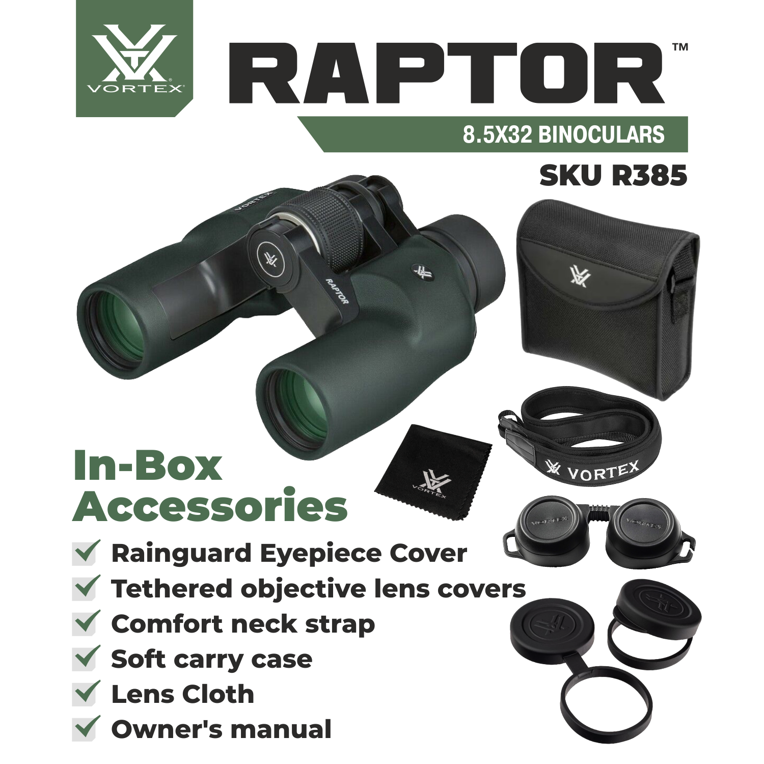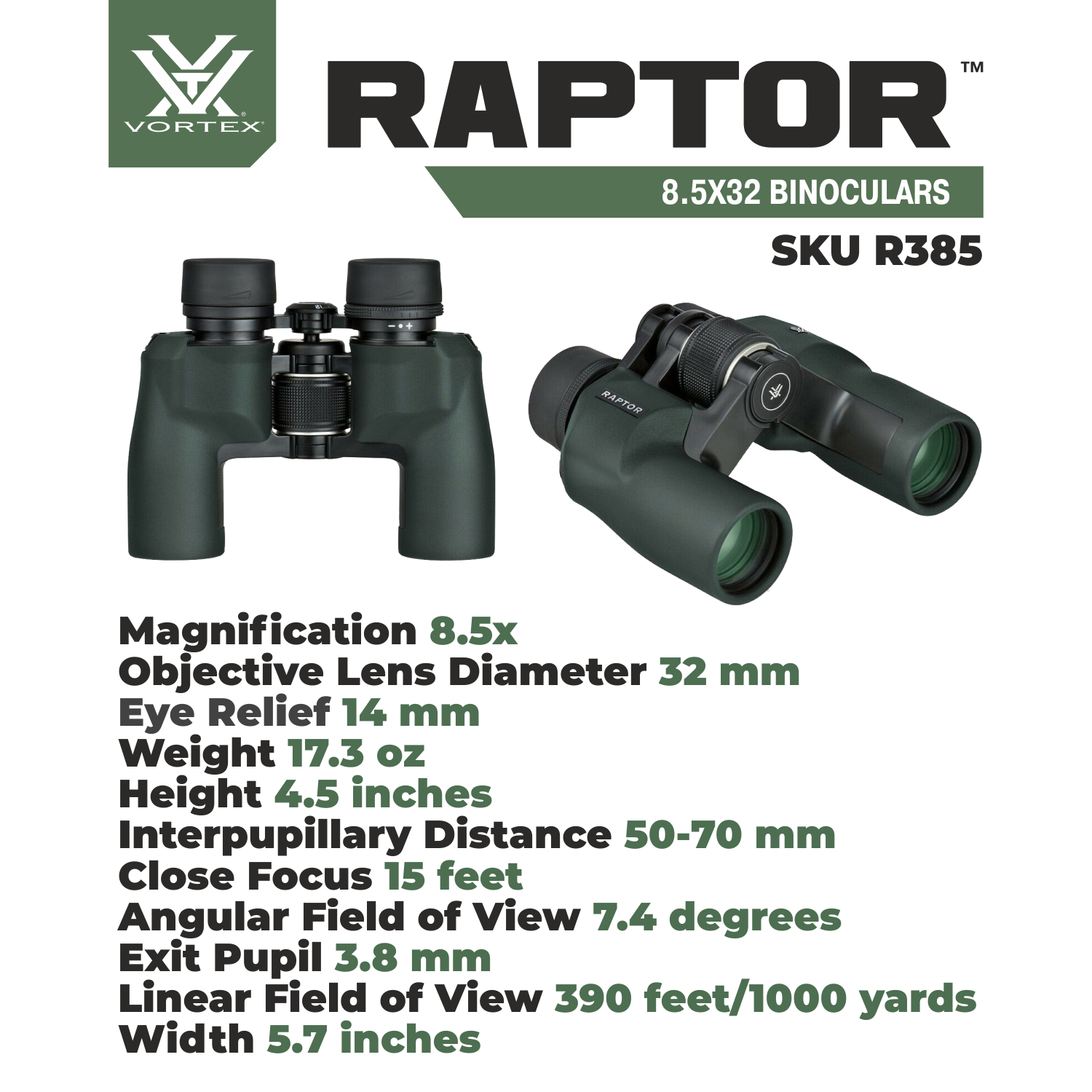 Vortex Optics Raptor 8.5x32 Porro Prism Binocular Specifications: