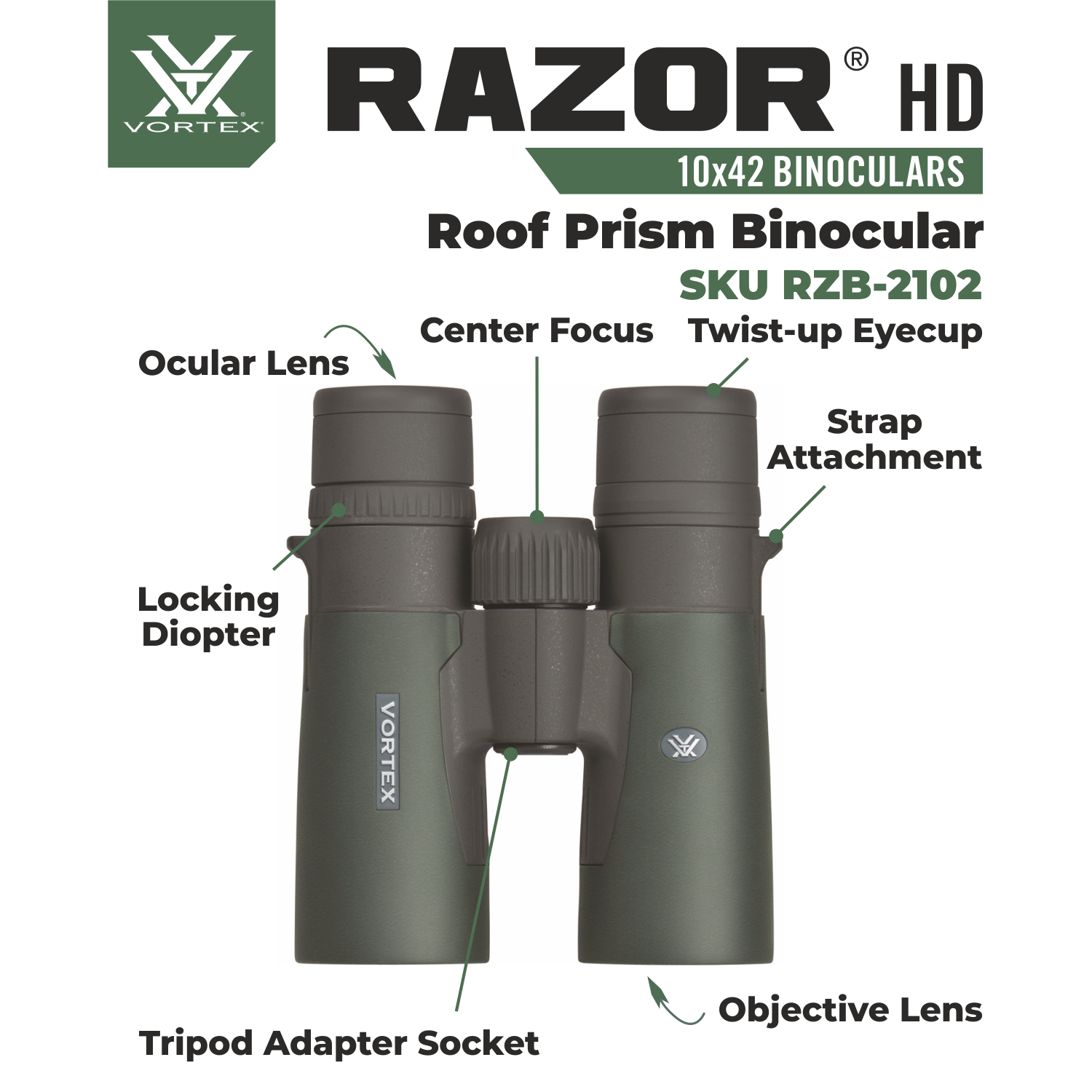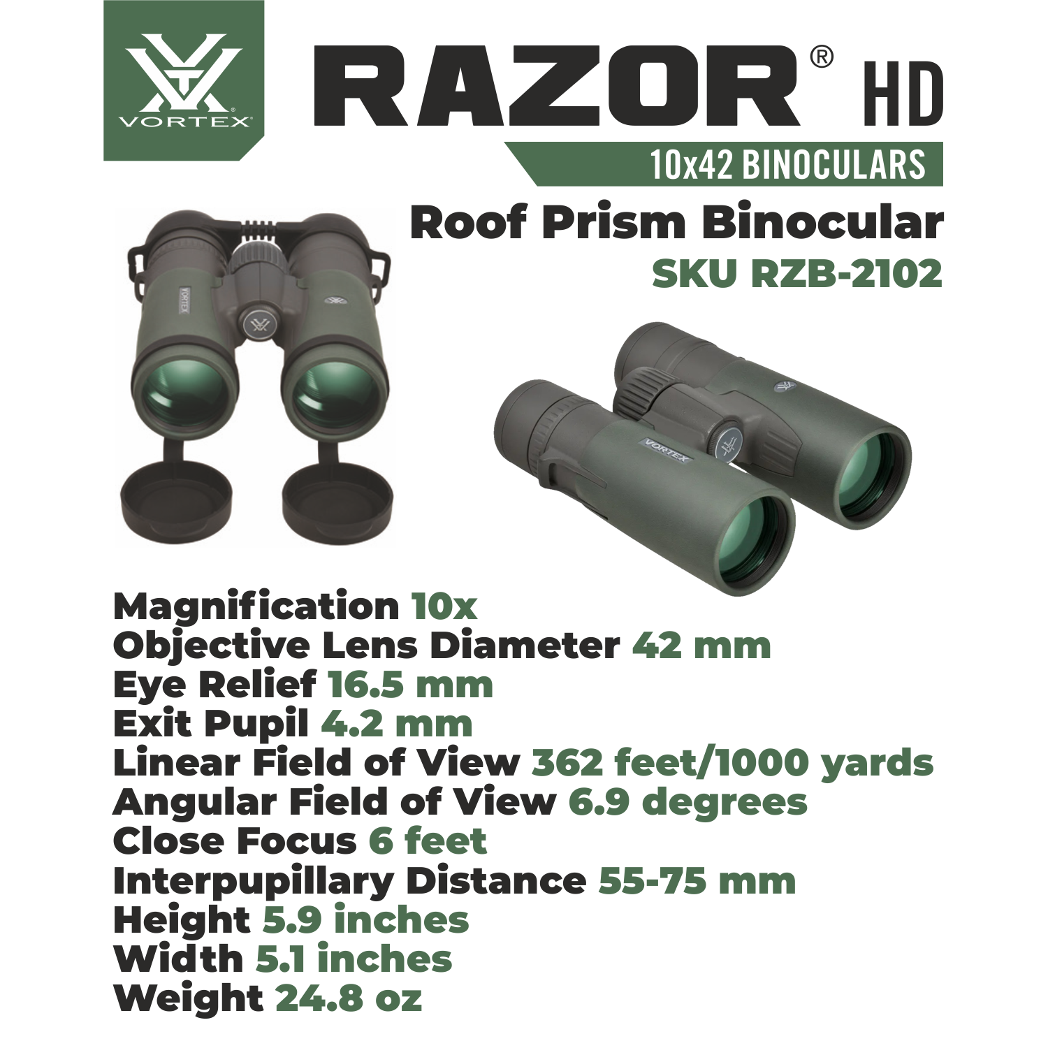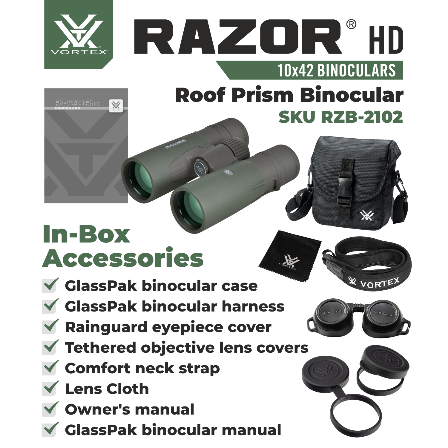 In The Box Vortex Optics Razor HD 10x42 Roof Prism Binocular (Bundle Options Available. Choose Your Bundle Option)