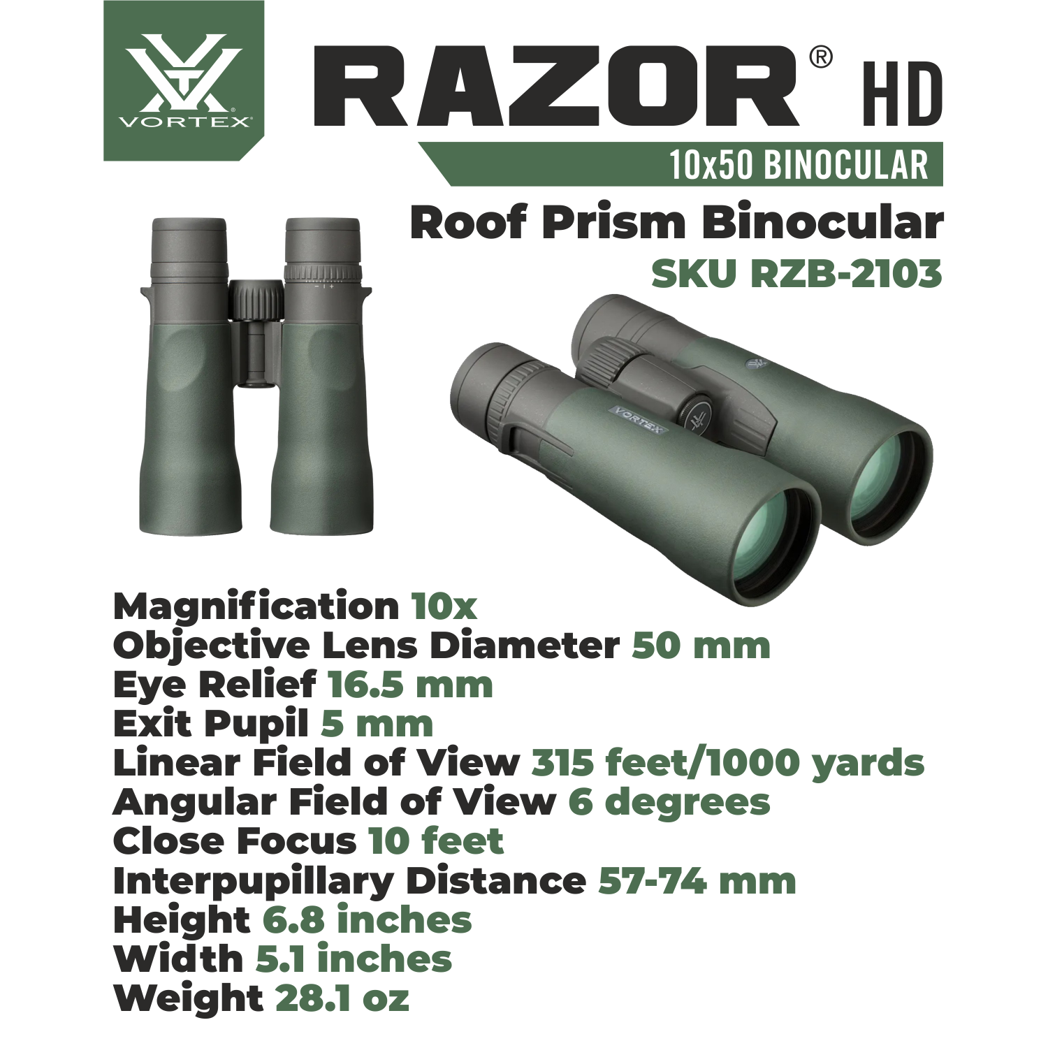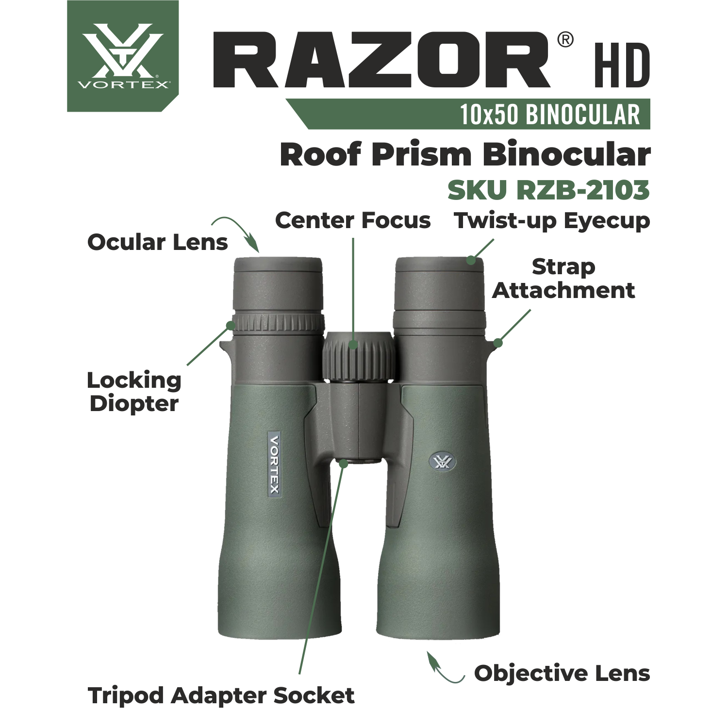 In The Box Vortex Optics Razor HD 10x50 Roof Prism Binocular (Bundle Options Available. Choose Your Bundle Option)