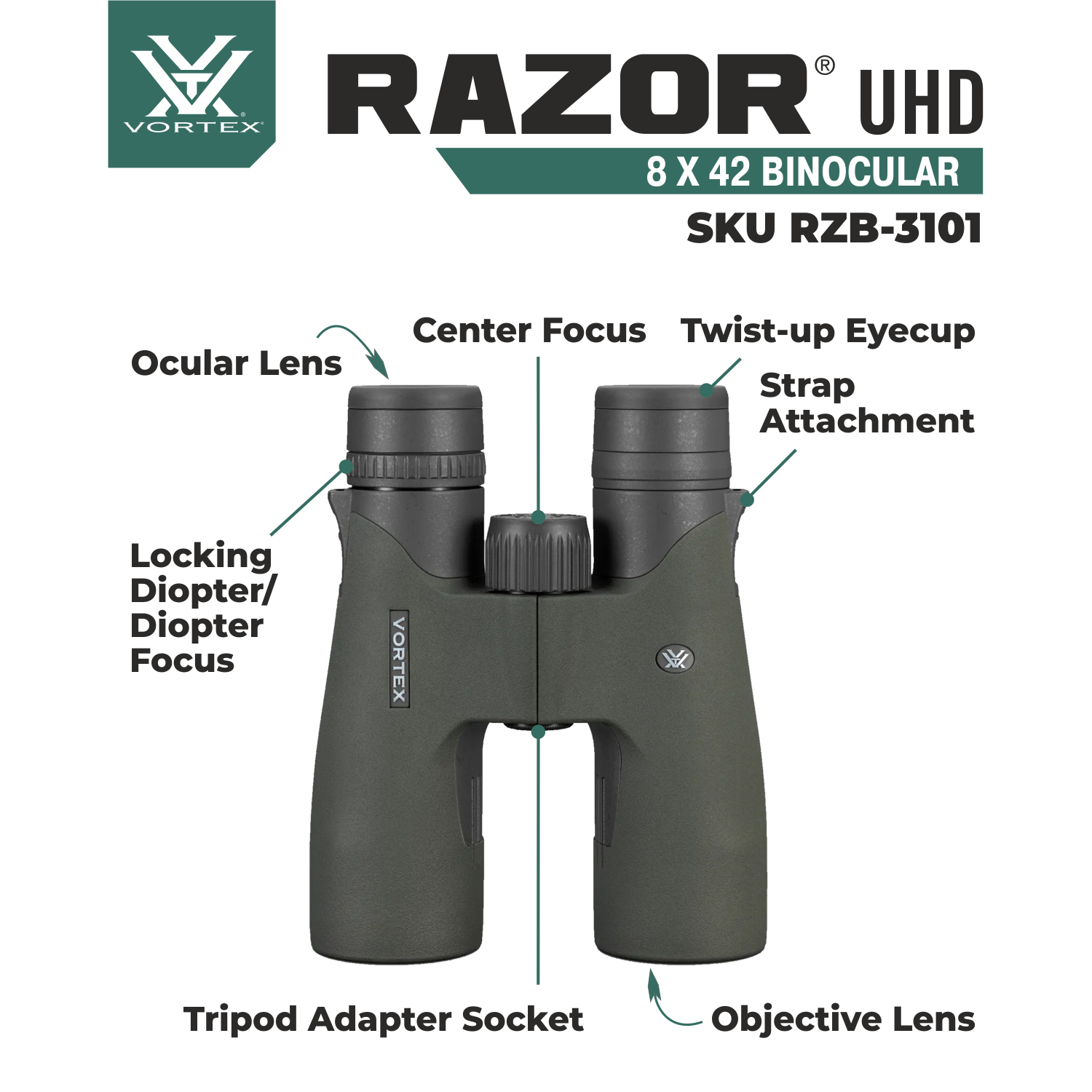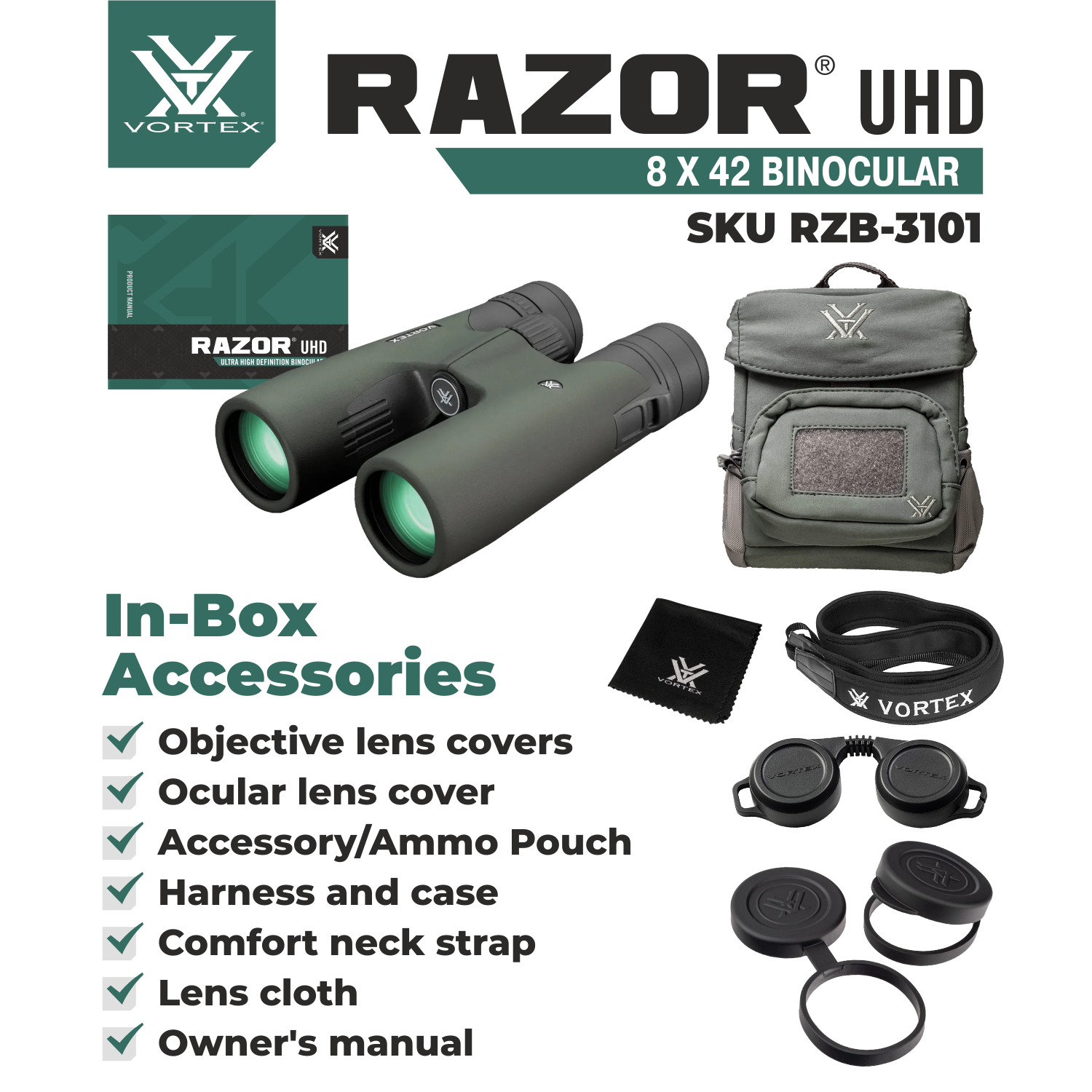 In The Box Vortex Optics Razor UHD 8x42 Binocular (Bundle Options Available. Choose Your Bundle Option)
