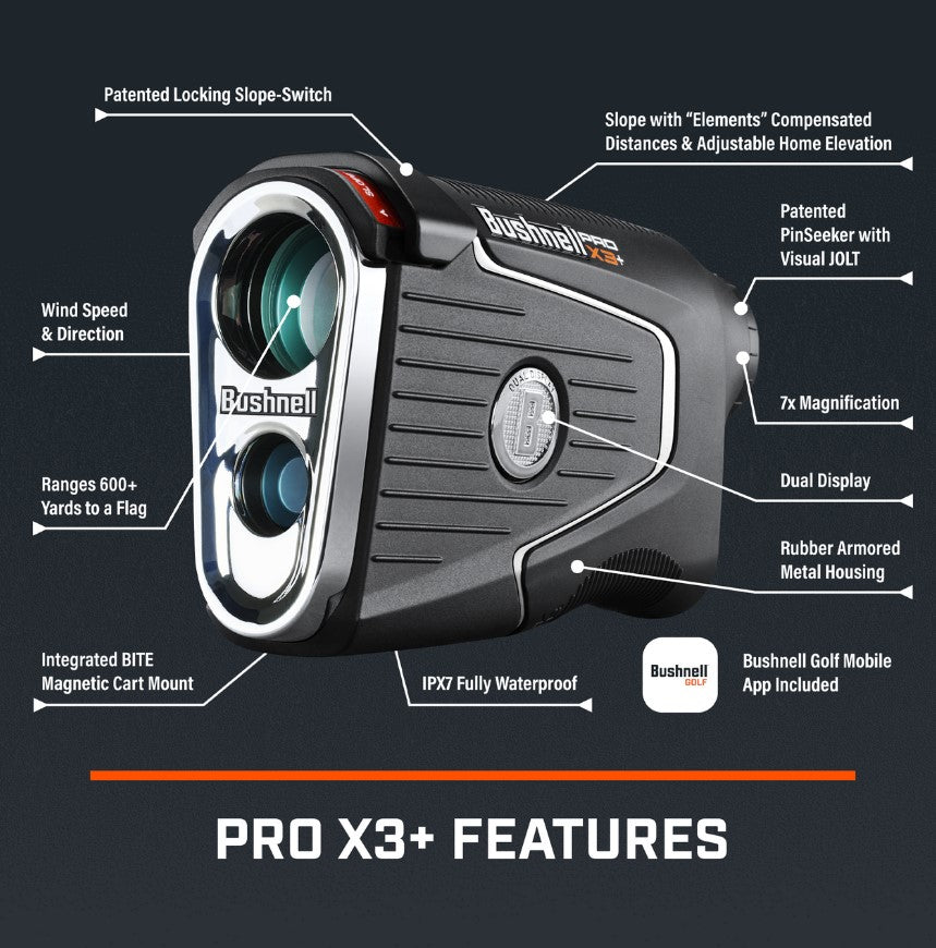 Precision Perfected: Next Level Performance with Wind. Pro X3+ is the most powerful, precise laser rangefinder to date – packing all of the market-leading innovations you have come to expect from the #1 Rangefinder in Golf.