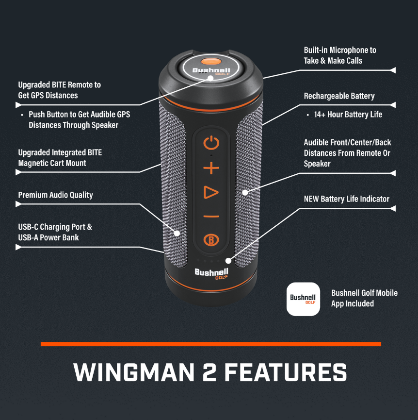 - Enhanced Course Experience: With the Wingman 2, enjoy seamless navigation through 38,000+ courses worldwide, receiving audible front, center, and back of green call-outs either directly from your speaker or through the upgraded remote.