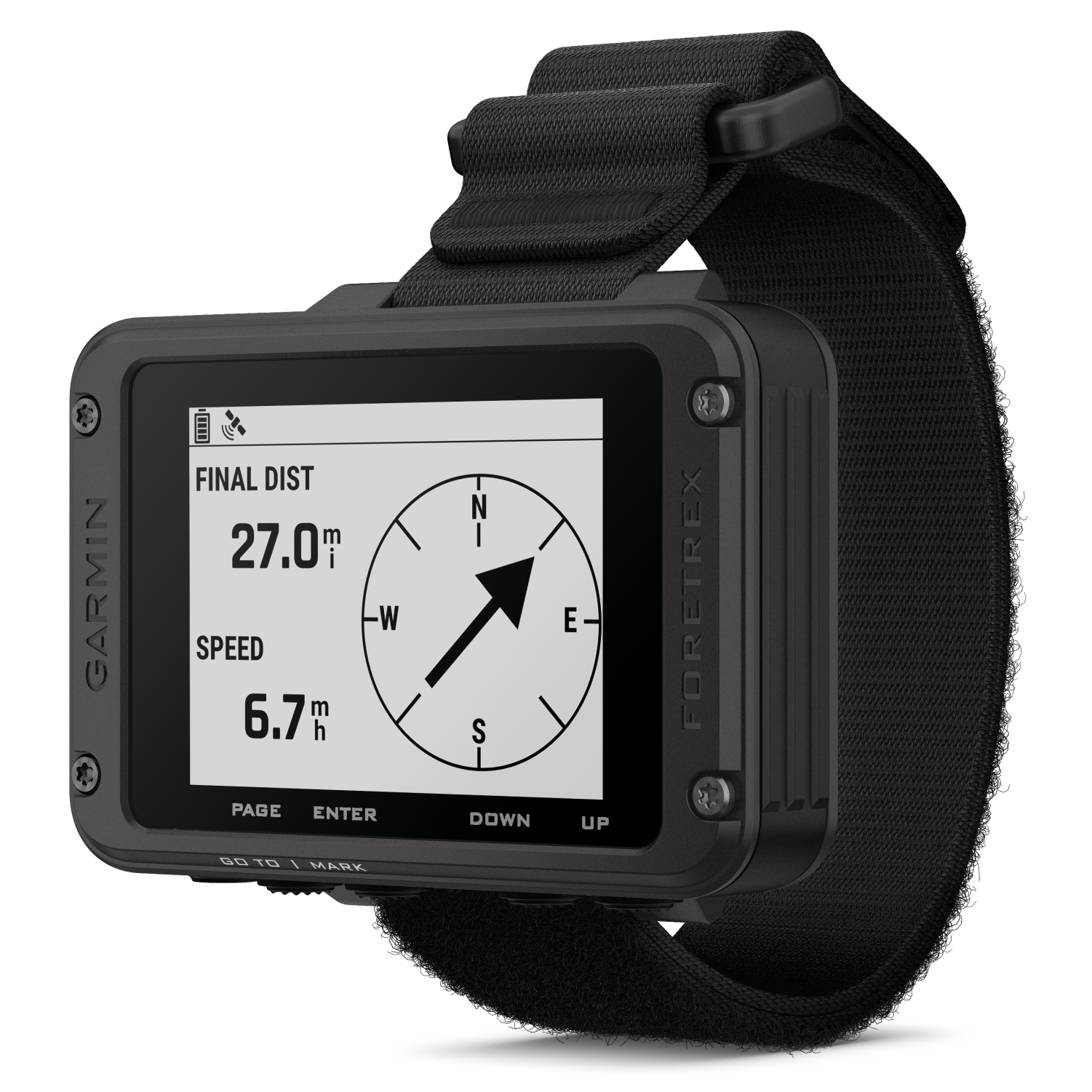 - Wrist-mounted GPS navigator with a monochromatic screen is easy to read in a variety of lighting conditions
