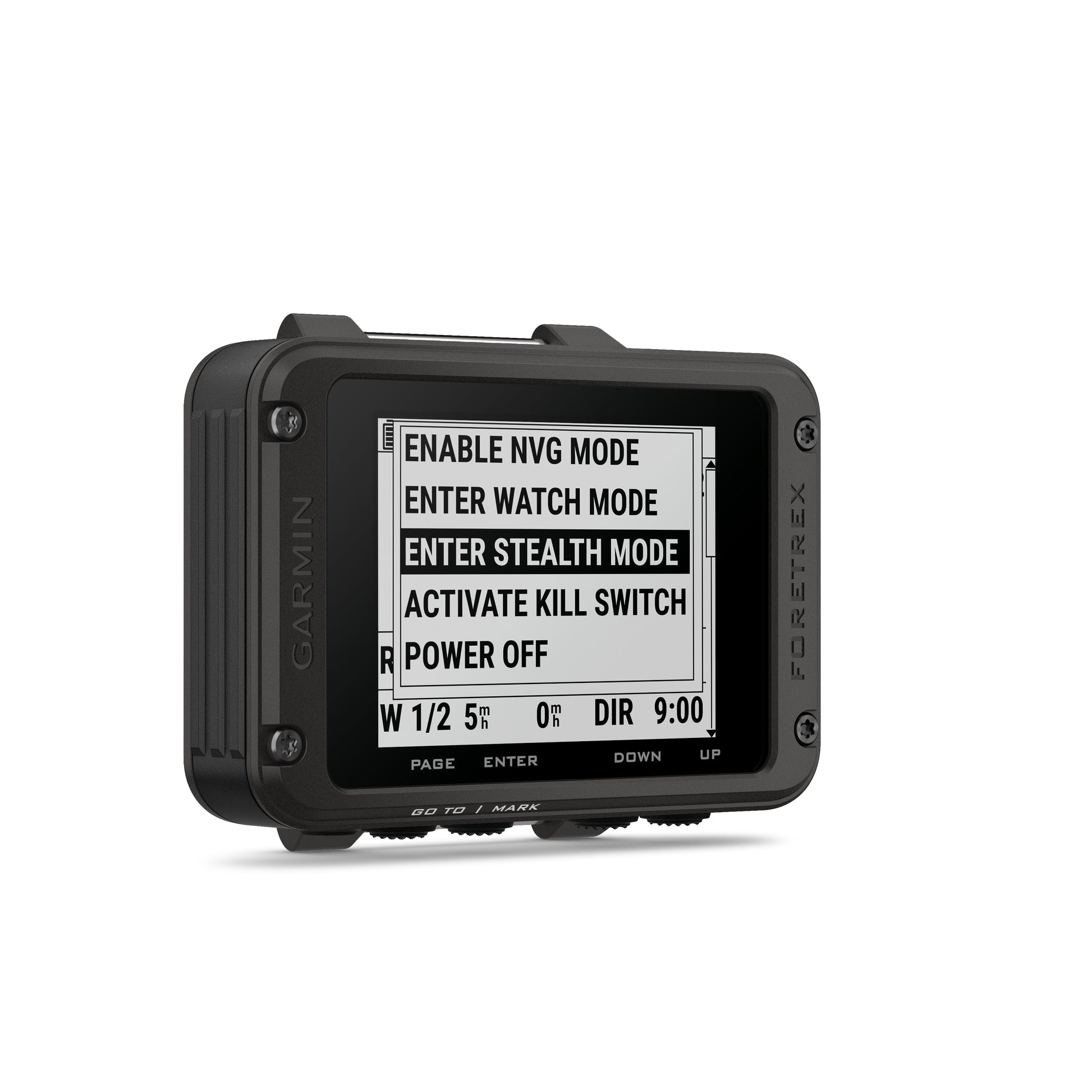 Make the mission possible with the Foretrex 801 wrist-mounted GPS navigator. Navigate with improved positional accuracy, thanks to the upgraded multi-band signal reception technology. Get up to 100 hours of battery life in GPS mode. Tactical features, such as jumpmaster mode, stealth mode and kill switch, equip you for the mission and beyond. The improved monochromatic screen gives you better visibility in all lighting conditions and is easy to read with night vision goggles. The rugged device is built to military standards and has an IPX7 water rating. Plan and review your adventures with the Garmin Explore smartphone app. Get smart notifications and inReach device messages delivered to Foretrex 801 when connected to your compatible smartphone or your inReach satellite communicator (active subscription required; jurisdiction restrictions may apply).