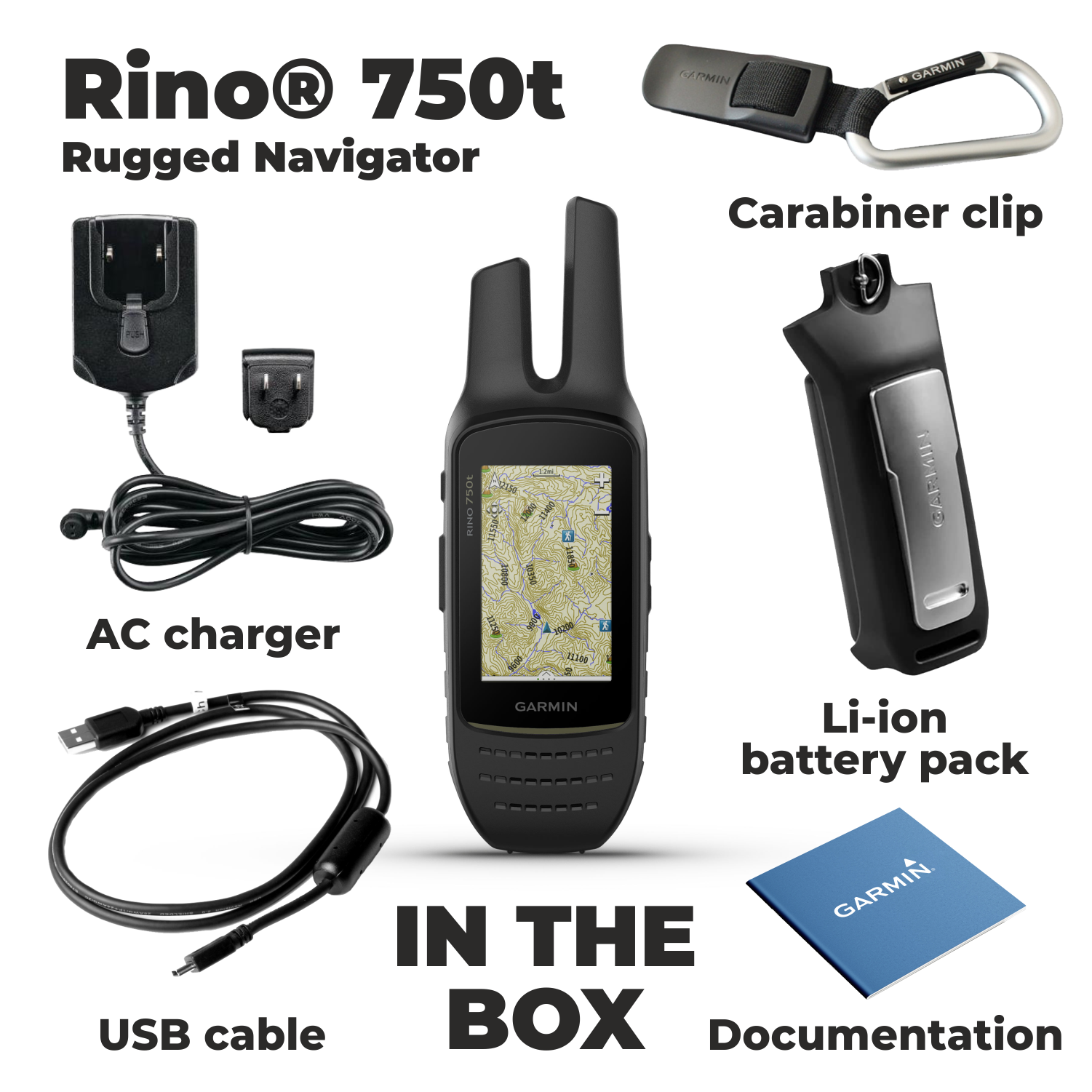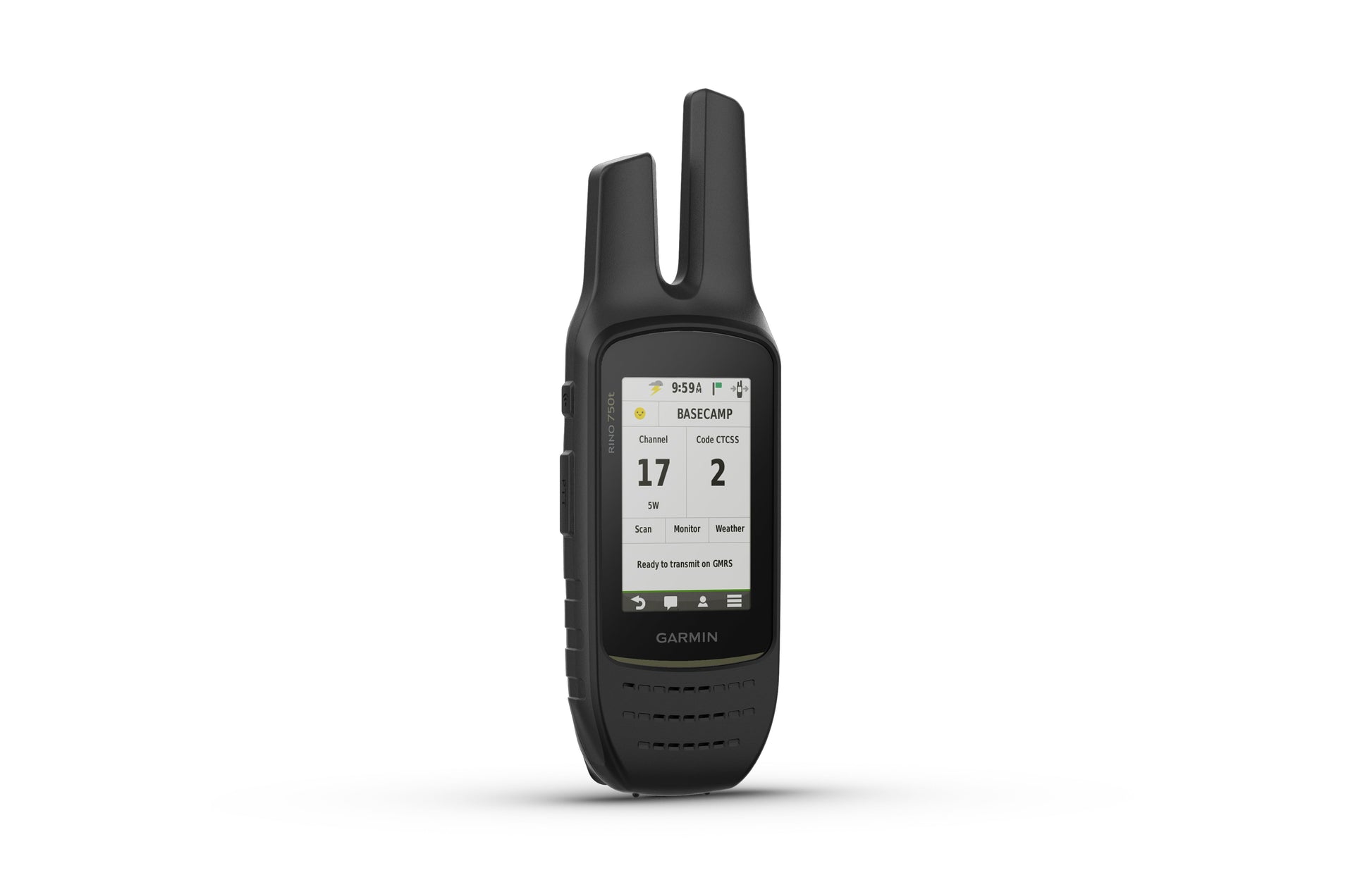 Rino 750t is the rugged navigator/radio handheld for outdoor enthusiasts who want to keep their group in the loop. It features a powerful 5-watt two-way radio (range up to 20 miles) plus multi-GNSS support, preloaded TOPO U.S. 100K maps, bright 3” touchscreen display and voice/text communication. It also supports active weather forecasts (not available in all areas) and animated radar overlays on the map. Other highlights include connectivity with headsets enabled with BLUETOOTH technology, a 3-axis compass, barometric altimeter and much more. The position reporting feature allows you to see the location of other Rino device users on the same channel.