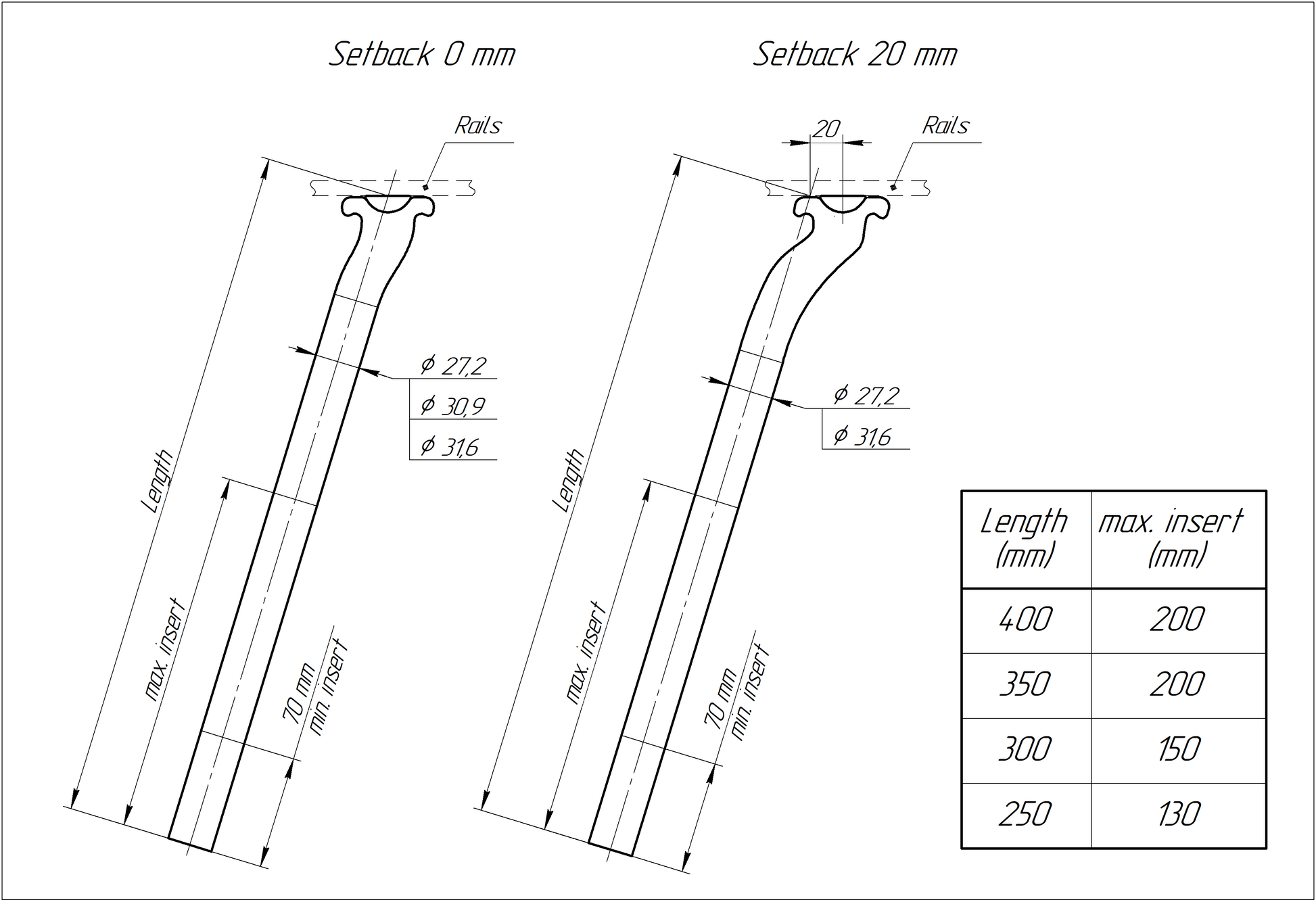 Note: Please check the layup scheme before choosing the length of your Glagol seatpost. We make seatposts with a specific layup for each length to make them lighter. The reinforced zone in which you can clamp the seatpost is limited. The clamping area is below and limited by the max insert line sticker.