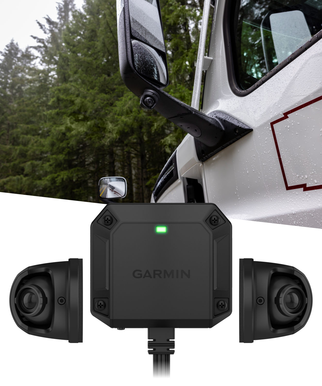 The dezl DualView camera system promotes increased situational awareness by providing a clear, live view down each side of your truck. Once installed, you can wirelessly stream video in-cab to your paired tablet or dezl LGV truck sat nav. The system provides continuous blind-spot monitoring, merging alerts and automatic high-definition video recordings of detected incidents (recording requires memory card, not included; some jurisdictions regulate or prohibit the use of this camera device). Plus, with a paid Vault plan, saved video clips are automatically and continuously stored in your online Vault so you can easily view and share via the Garmin Drive mobile app. A rugged IPX7-rated design withstands pressure washers and harsh weather. The camera system can mount to side mirrors or other flat surfaces on your truck to provide the view you want. Adjustable lenses make for easy setup and camera alignment by using the Garmin Drive app.