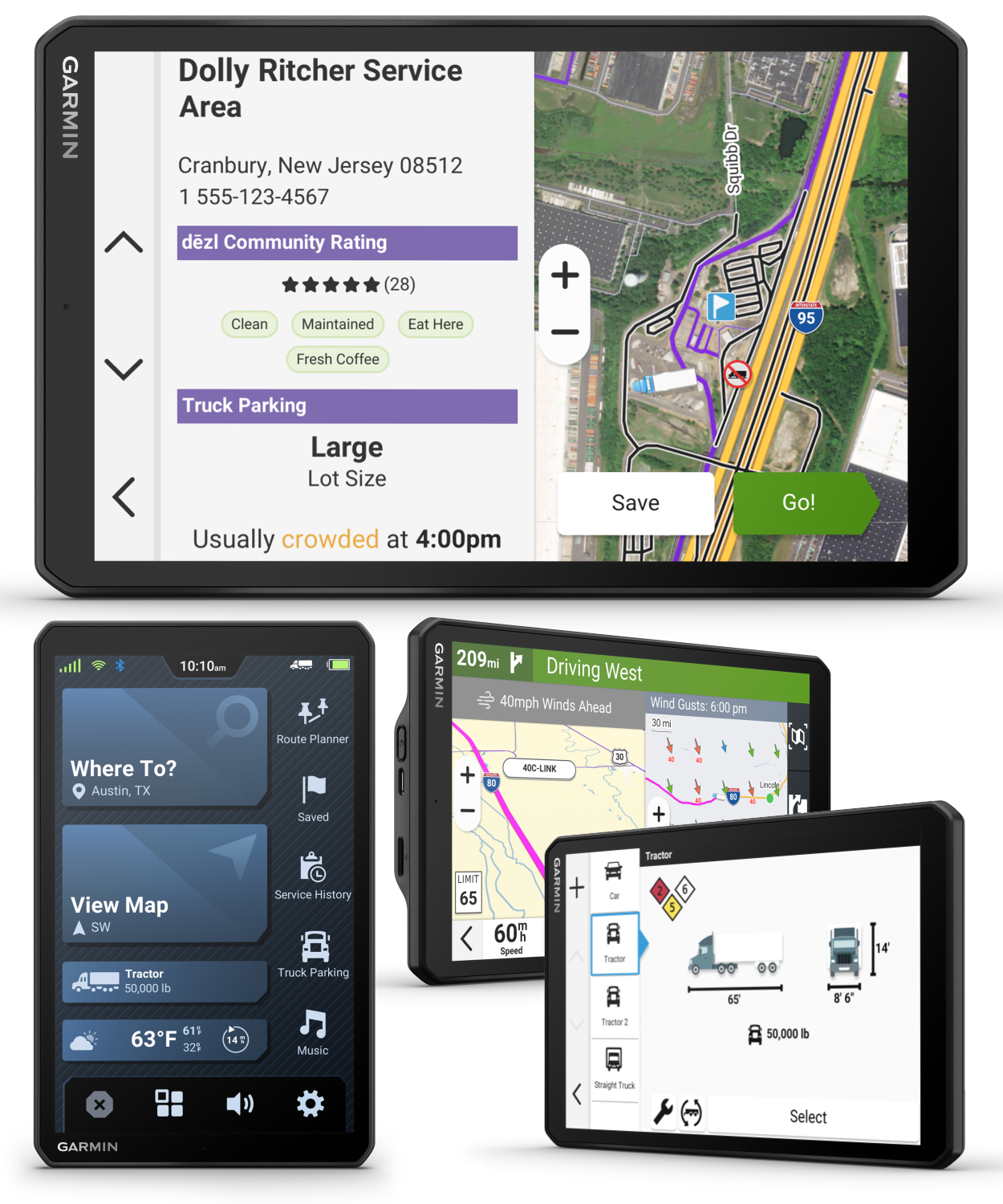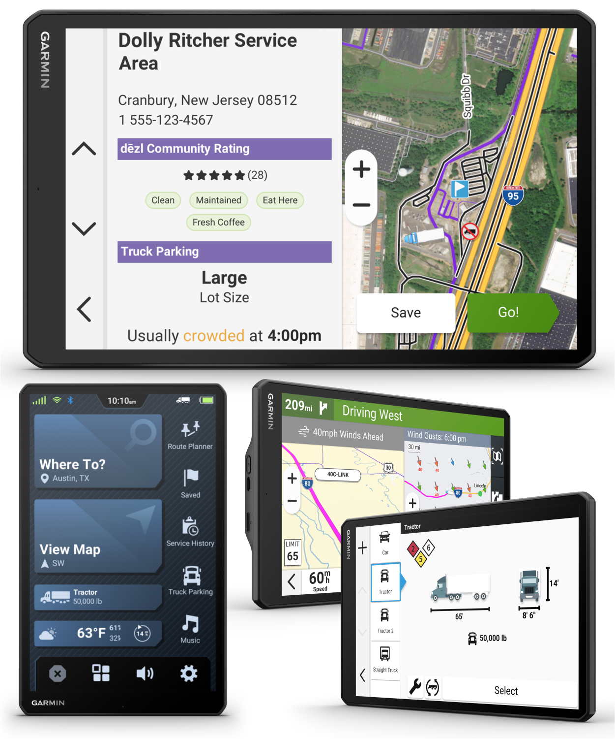 Delivering our best in trucker-trusted navigation, the dezl OTR navigator features dezl community insights from thousands of truck drivers to help you find trucker-rated parking, community-shared loading docks and other preferred trucking locations when paired with the dezl app on your compatible smartphone. Get new wind speed weather alerts, via the dēzl app on your compatible smartphone, as well as road warnings for upcoming sharp curves and bridge heights to help aid awareness of potentially hazardous conditions along your route. Also new, an easy search tool lets you quickly find nearby CAT Scale locations to verify your load is within legal weight limits before hitting the road. Detailed maps offer custom truck routing for the size and weight of your rig (not available in all areas; always defer to posted road signs and road conditions). Plus, an active PrePass account lets you receive weigh station and bypass notifications to save you time and improve efficiency. Expert arrival planning includes high-resolution aerial views of your destination for a smooth arrival at security gates, truck entrances and more. For the ultimate in-cab experience, pair with the dezl smartphone app and add a premium dezl headset (sold separately), so route guidance from your navigator can blend seamlessly into your headset audio stream.