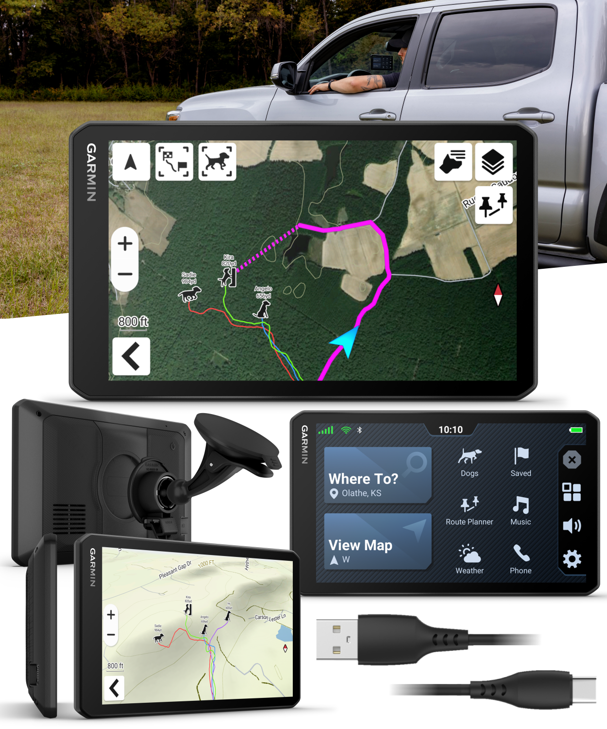 • Bright, high-resolution 7" touchscreen for crisp, easy-to-read on-road and off-road navigation.