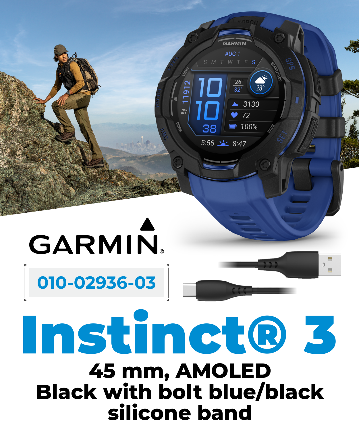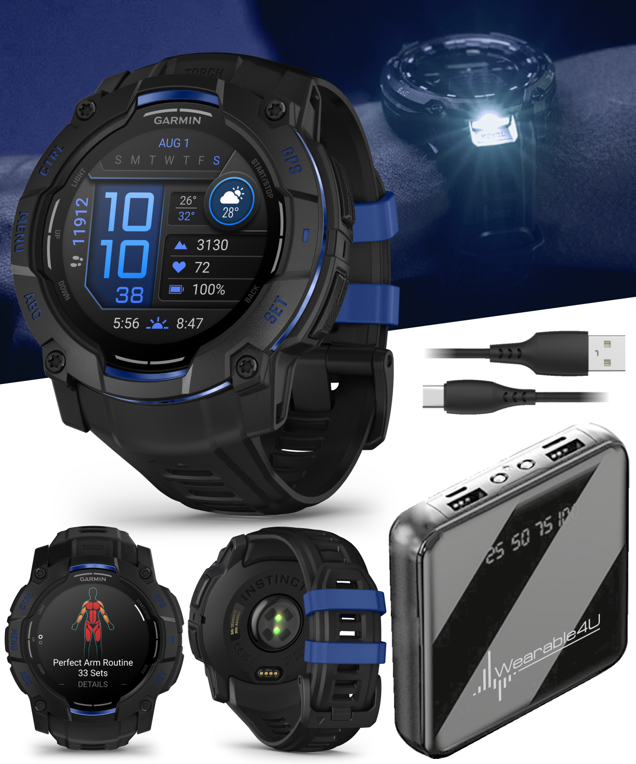 - IN THE BOX (+Power Bank Bundle): 1x Garmin Instinct 3 Series Smartwatch, 1x charging/data cable, 1x Wearable4U Power Bank, documentation
