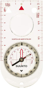 A compact, accurate compass for hiking and orienteering, also in poor visibilit. Suunto A-30 is a reliable baseplate compass for navigating and surviving in extreme conditions. The Earth’s magnetic field does not flow evenly between the magnetic poles along the surface of the planet. To compensate for the natural tilt in the magnetic field, Suunto compasses use one of two balancing systems and you should choose the variant best serving your needs. One is a two-zone system with needles balanced for either the northern or southern hemisphere. The second is a unique globally balanced system. A single needle is balanced to work anywhere in the world. This is achieved by a breakthrough construction allowing the needle and magnet to tilt independently.