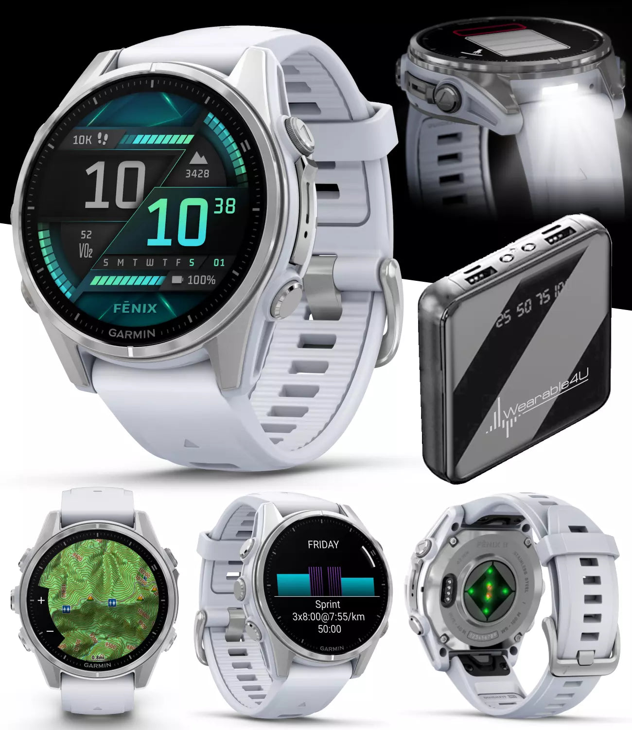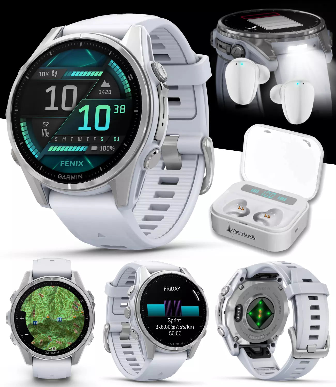 In The Box Garmin fenix 8 – 43 mm, AMOLED Multisport GPS Smartwatch, Silver with Whitestone Silicone Band, Built-in LED Flashlight (010-02903-00) (Bundle Options Available. Choose Your Bundle Option):