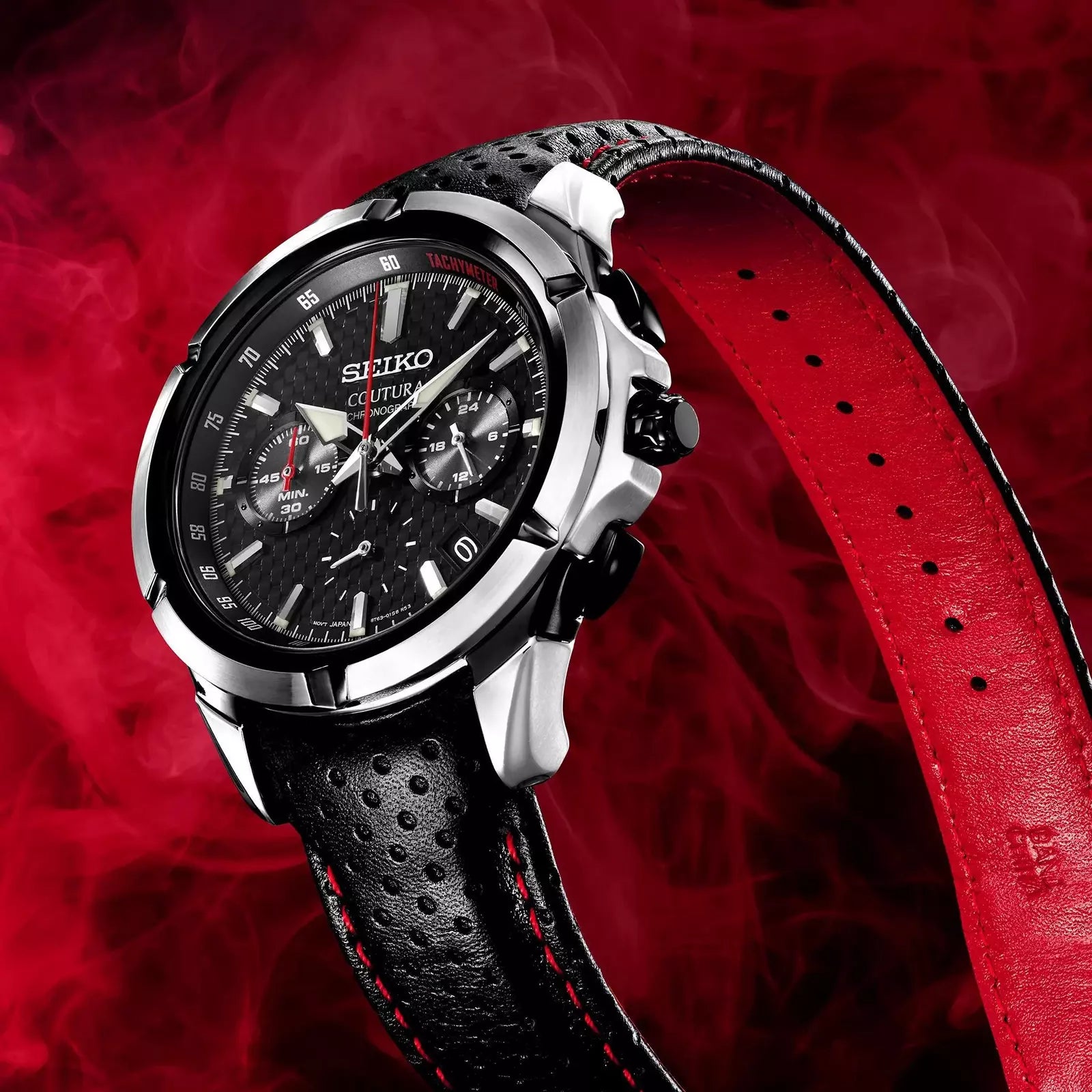 • Red chronograph hand