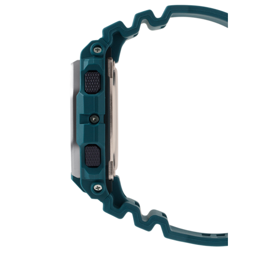 The surface of the bezel has a stainless steel cover with a hairline and honed finish that creates a look of elegant toughness. A resin guard structure that protects against impact from any direction combines with a button guard at 6 o'clock, which delivers outstanding G-SHOCK protection. The end of the soft urethane band at 6 o'clock has slits to allow the draining of water and sweat for improved comfort.