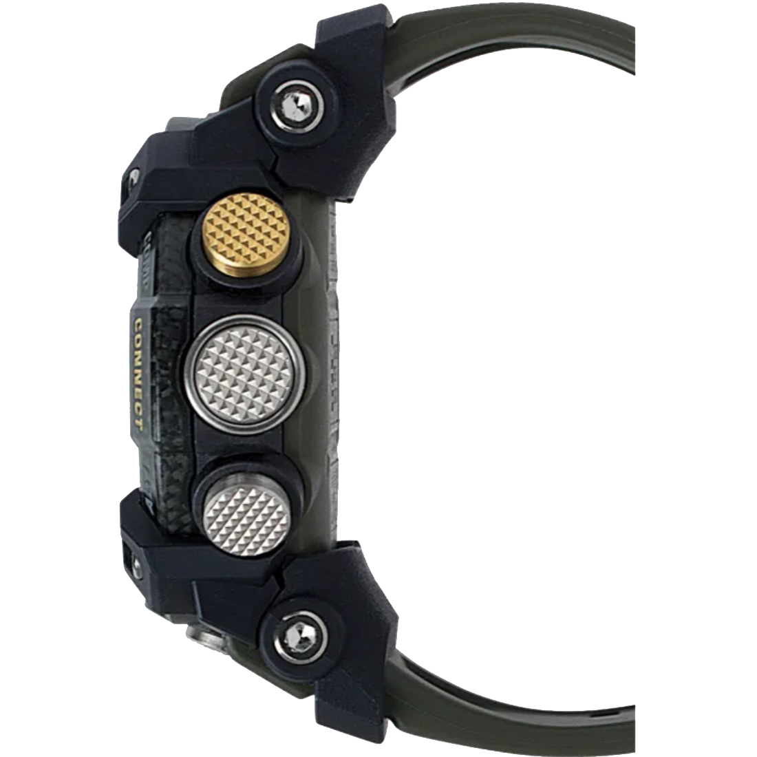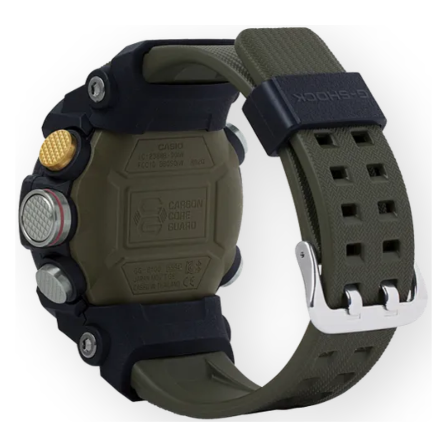 GG-B100 features a stainless-steel panel back that keeps the watch airtight, as well as a fine resin glass fibre case back that makes it tough against shocks. This design is inspired from the petrol tanks carried on offroad vehicles often used on rough roads.