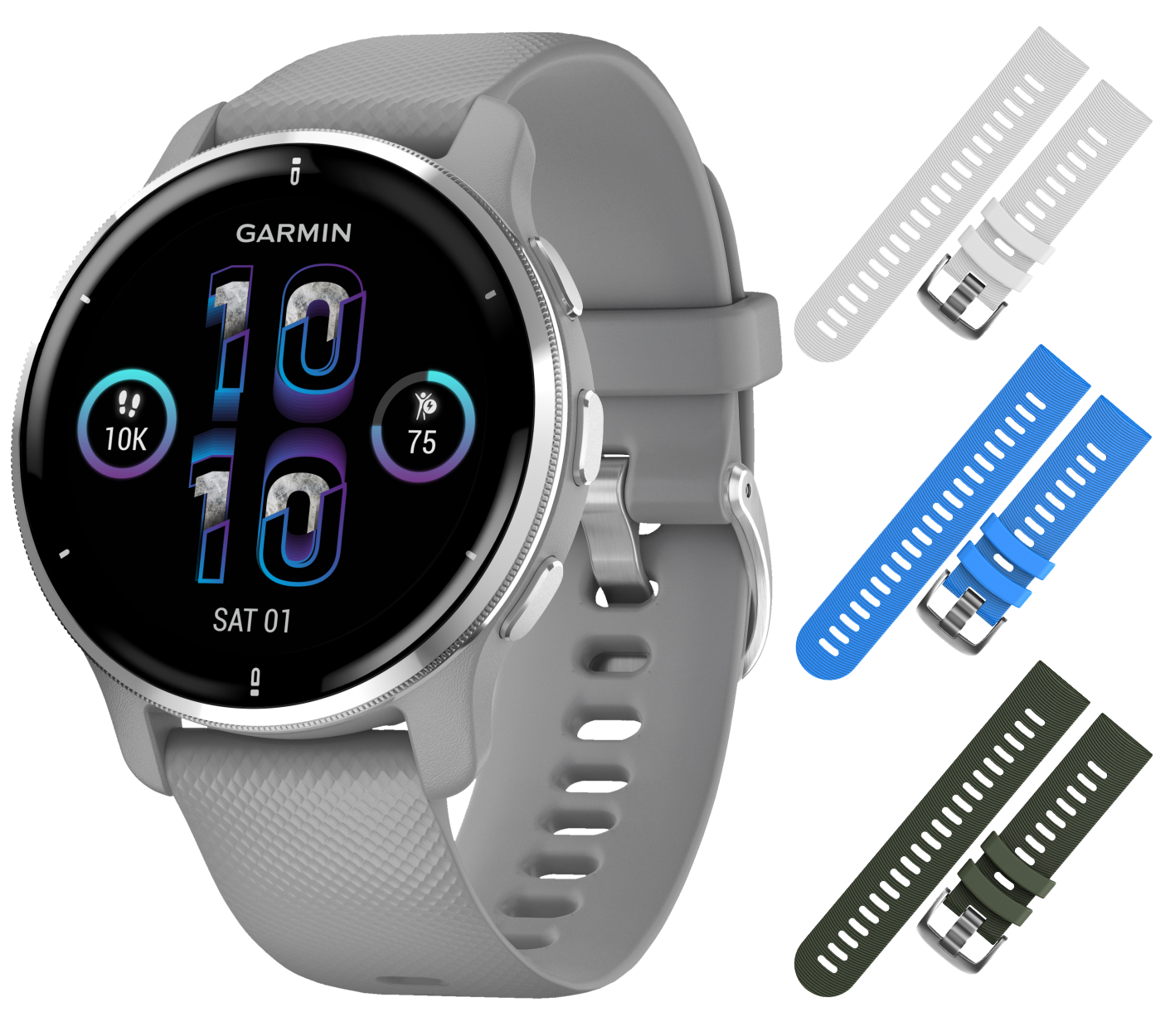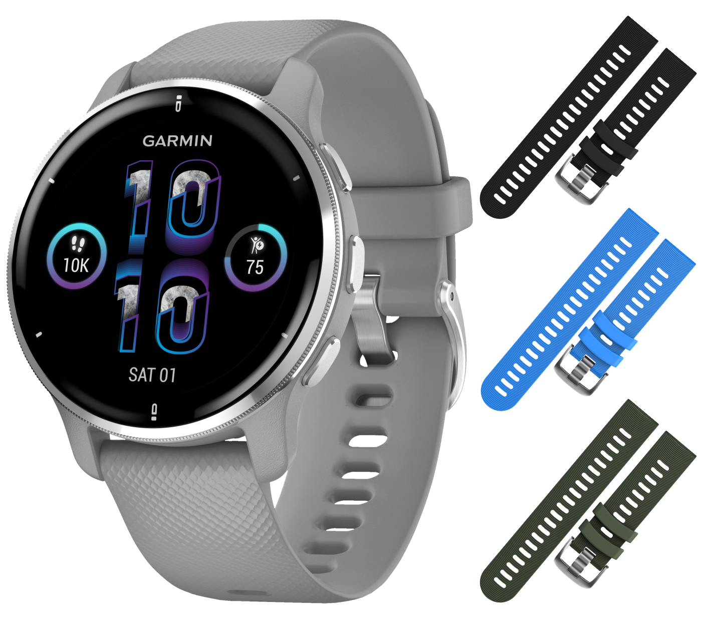 - Silver w/ Gray Case / Black+Blue+Khaki