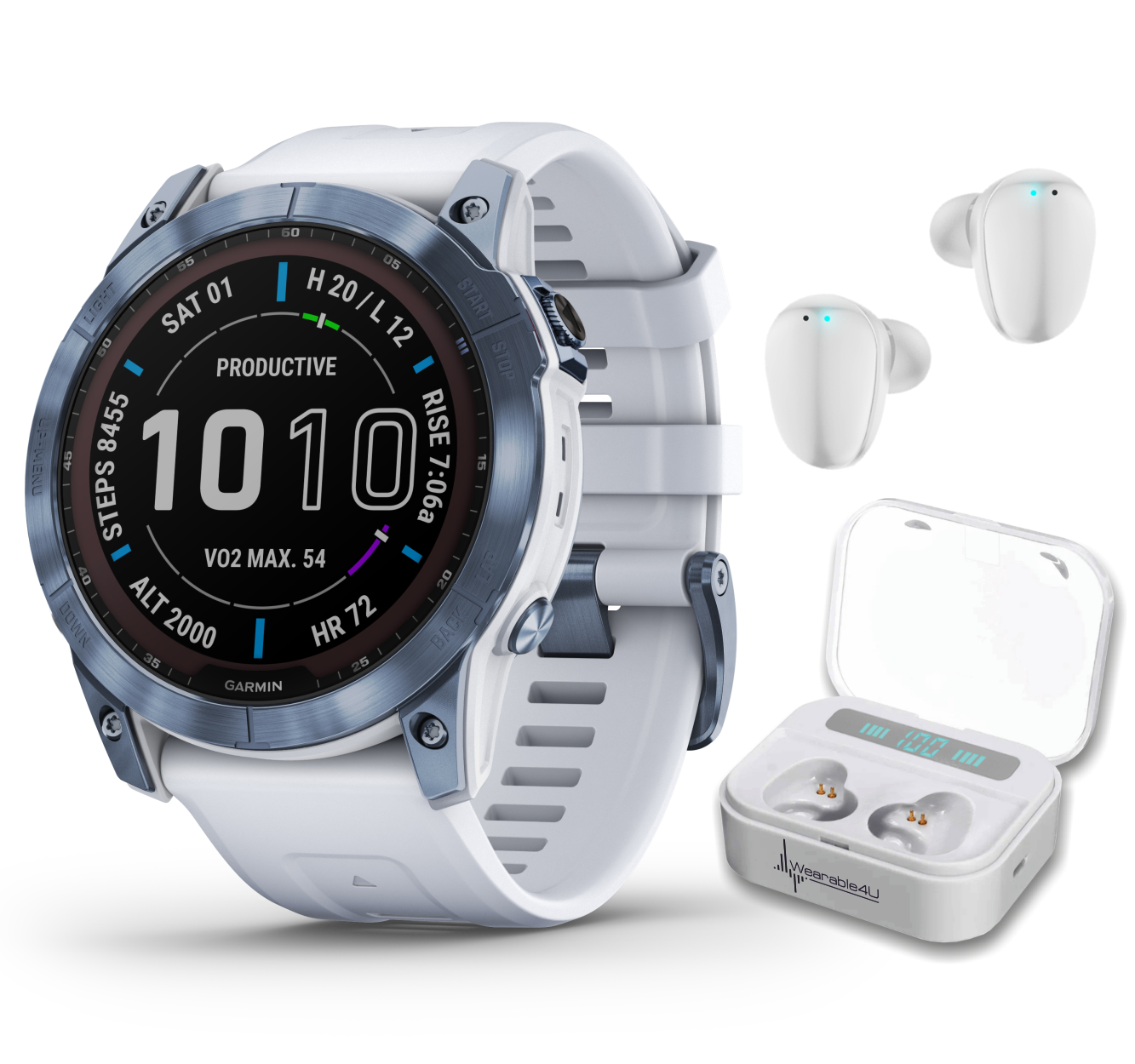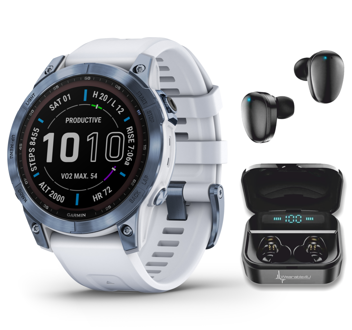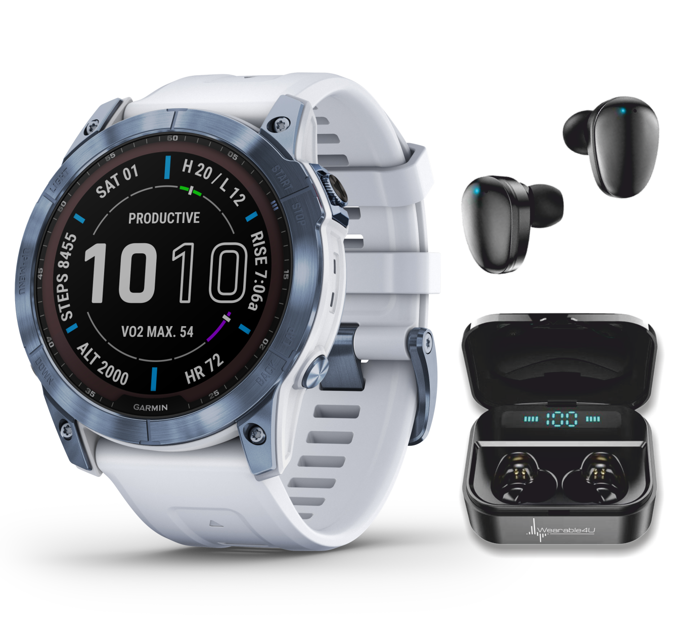 - Fenix 7X / Sapphire Solar - Mineral Blue DLC Titanium / '+ White EarBuds