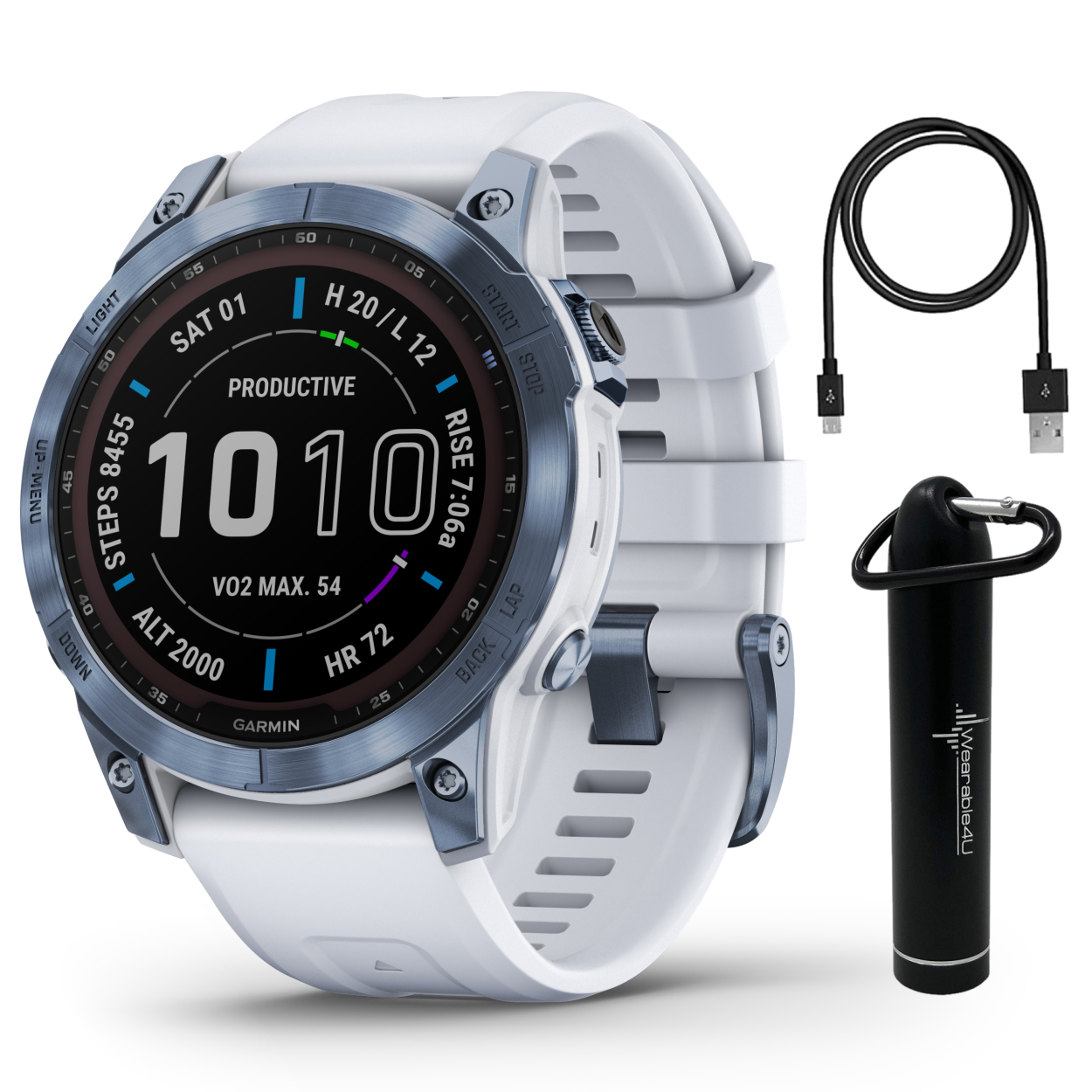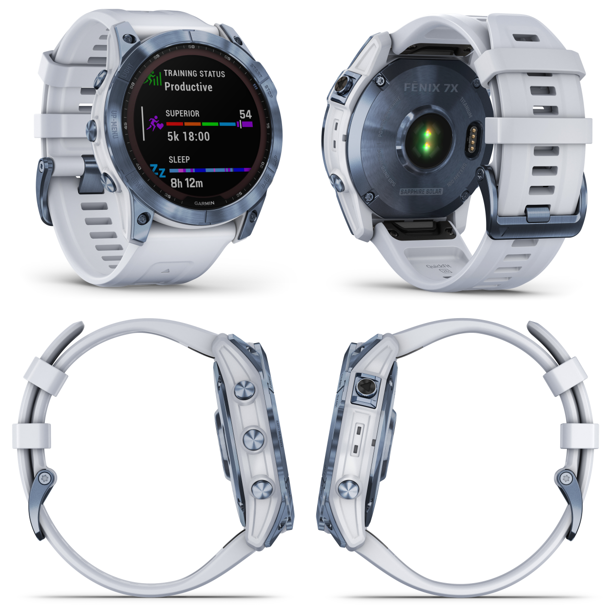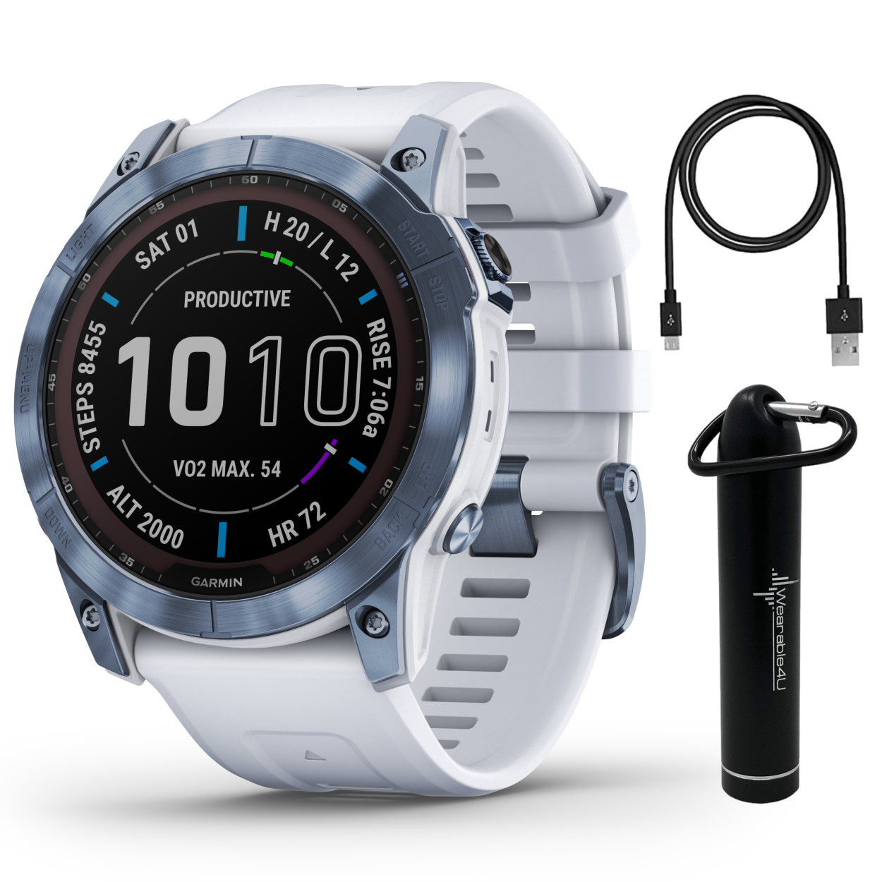 - Fenix 7X / Sapphire Solar - Mineral Blue DLC Titanium / '+ White EarBuds