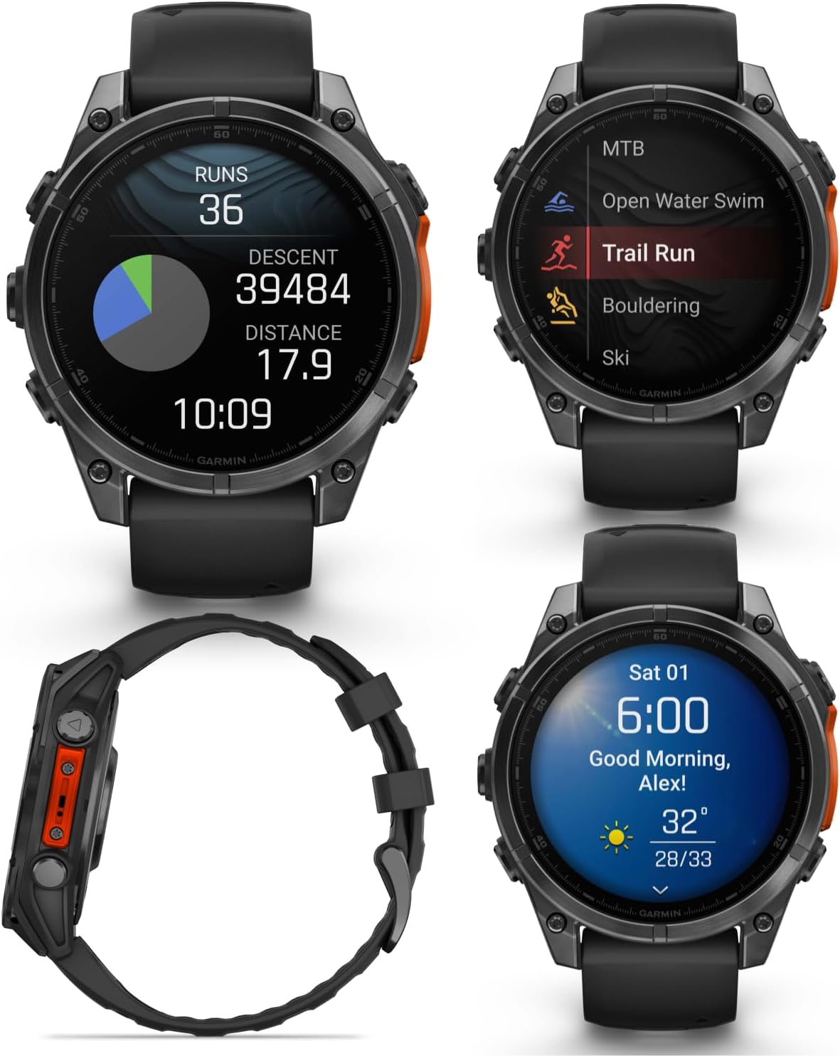 In The Box Garmin Fenix 8 47 mm, AMOLED Slate Gray with Black Silicone Band Multisport GPS Smartwatch (010-02904-00) (Bundle Options Available. Choose Your Bundle Option):