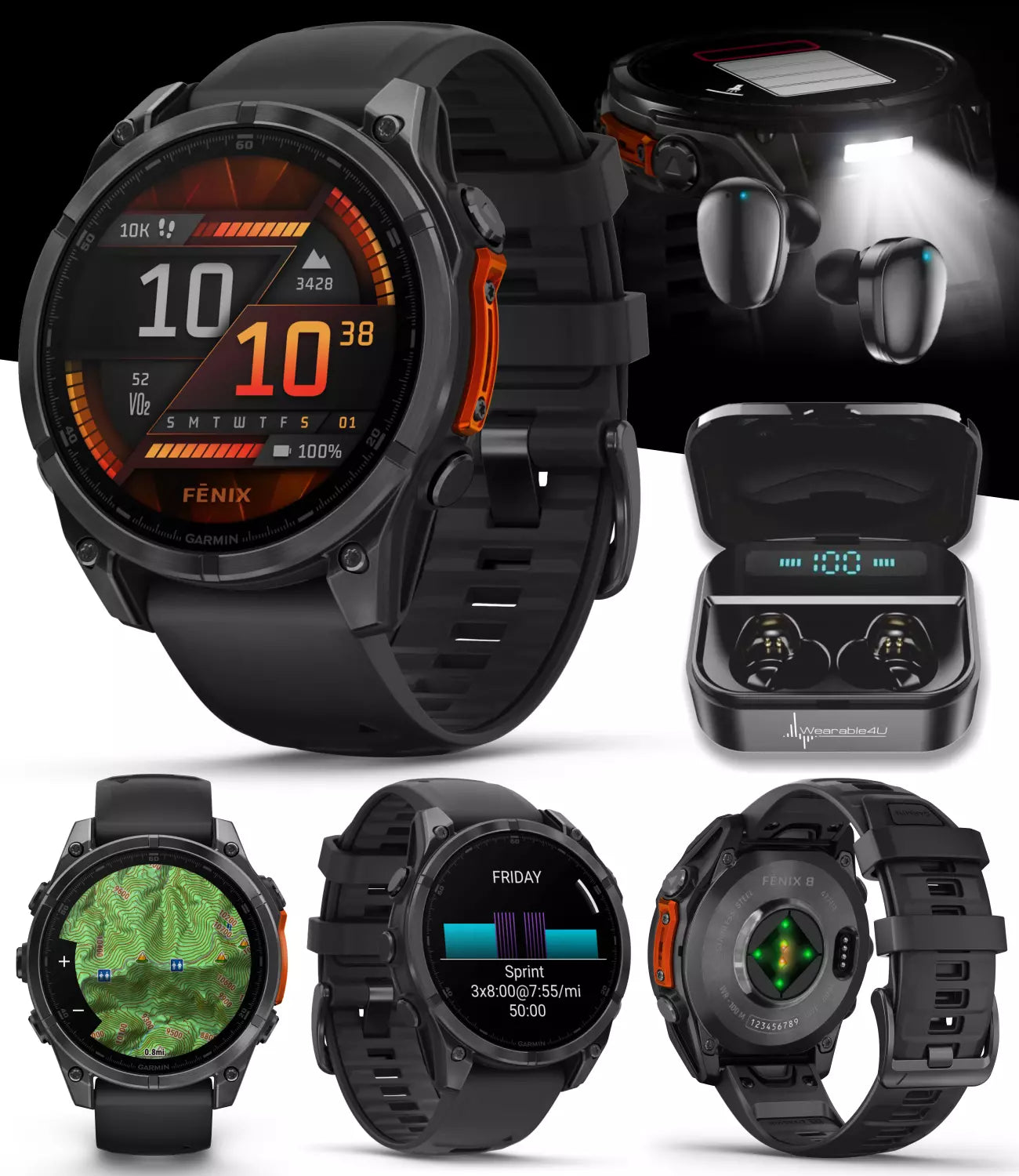 For serious athletes and adventurers who want to push beyond their limits, this premium multisport GPS smartwatch is built to perform — with advanced strength training features, dive capability, an internal speaker and mic for voice features, a built-in LED flashlight and more.