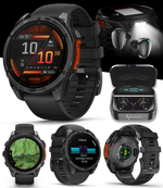 - fenix 8 Sapphire Titanium Solar – 51 mm / Carbon Gray DLC with Black/Pebble Gray / +White EarBuds