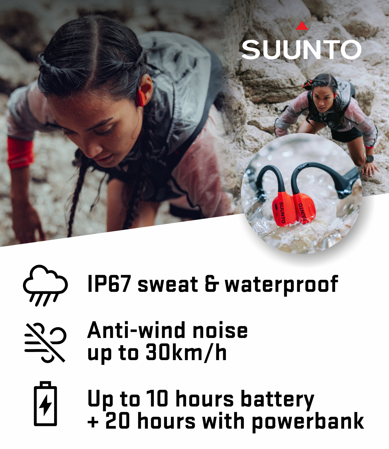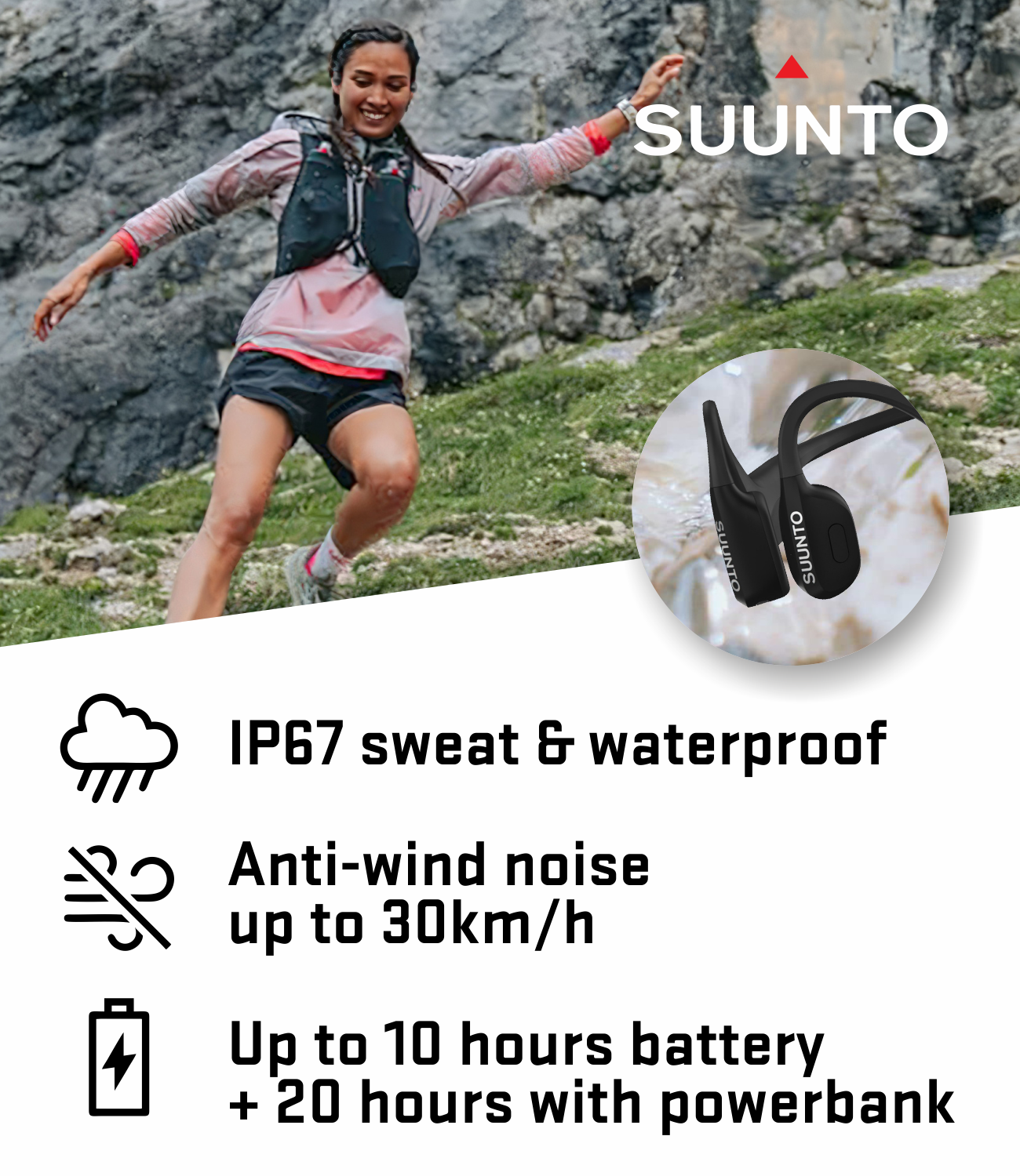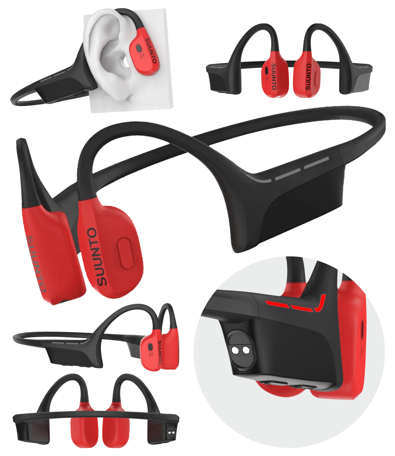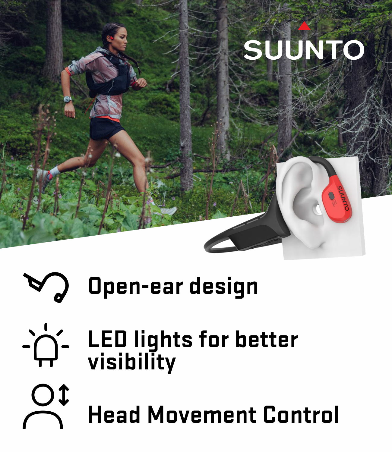 - OPEN-EAR BONE CONDUCTION TECH - SUUNTO Wing open-ear headset uses bone conduction technology to transmit sound waves without leakage issues, keeping your ear canals open to listen to audio and hear the surroundings to reduce the risk of accidents effectively. And compared to traditional in-ear or over-ear headphones, the open-ear headphones won't damage your eardrums or hearing with prolonged use.